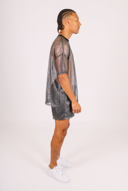 Oversized Metallic Mesh T-Shirt