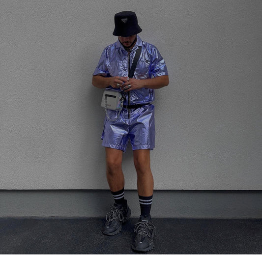 Metallic Grey Mesh Mesh Shorts