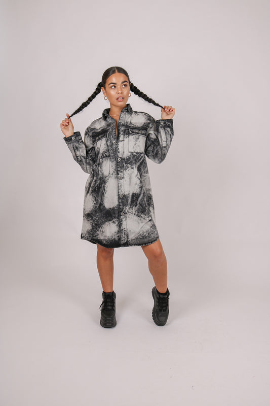 ONE ABOVE ANOTHER Bleach Washed Oversized Shirt Dress