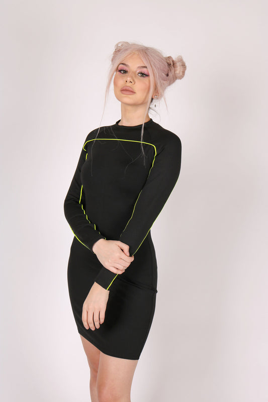 ONE ABOVE ANOTHER Black Mini Dress With Neon Piping