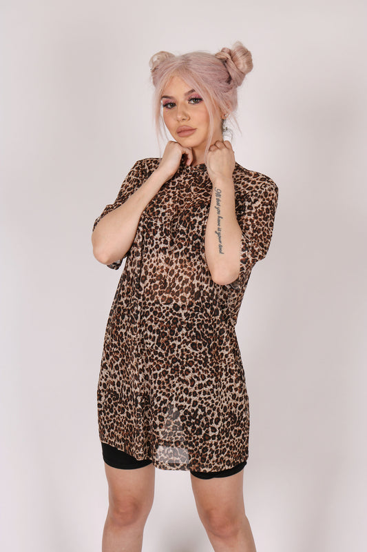ONE ABOVE ANOTHER Leopard Mesh T-shirt Dress