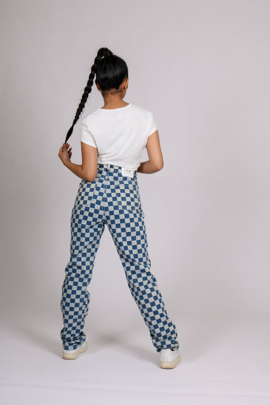ONE ABOVE ANOTHER Denim Wide Leg Checkered Jean