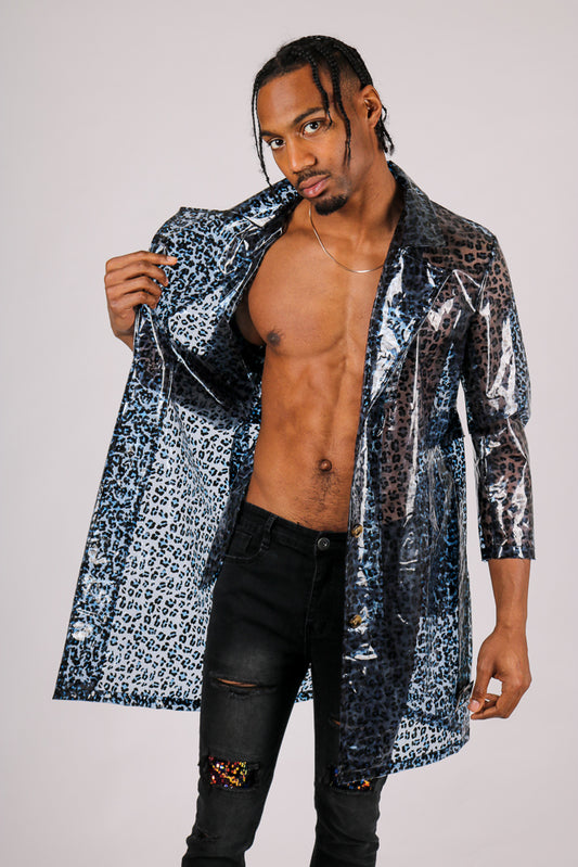Blue Leopard Transparent Vinyl Trench Coat