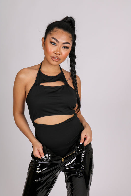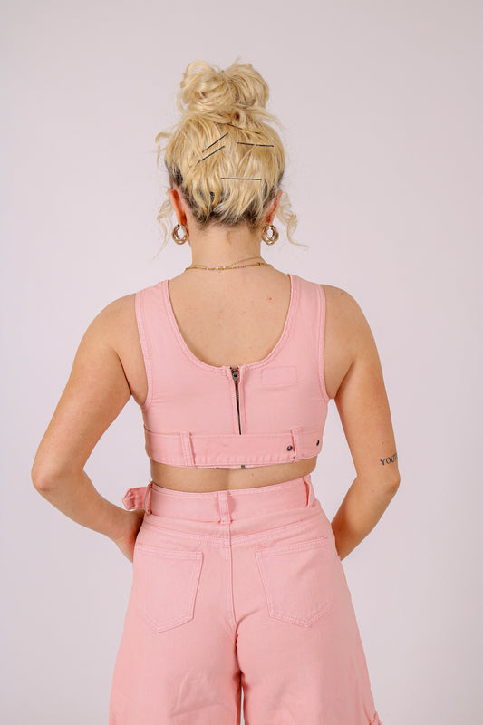 PINK MARBLE EFFECT CROP WITH CHAIN HALTERNECK