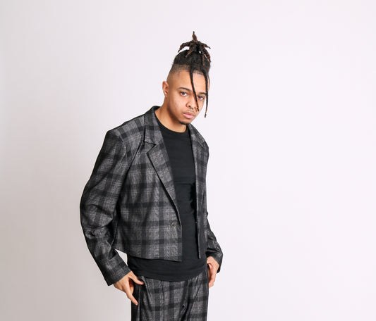 For That Thing You Have To Go To 'Dark Grey Check Cropped Blazer'