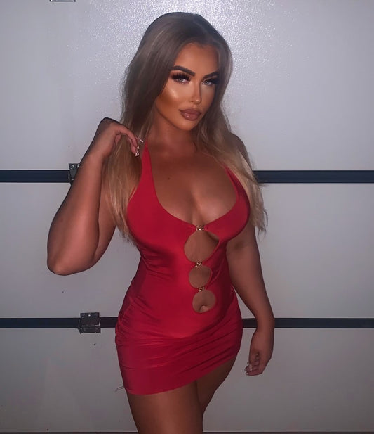 Blue Cut-Out Chain Halter-Neck Mini Dress