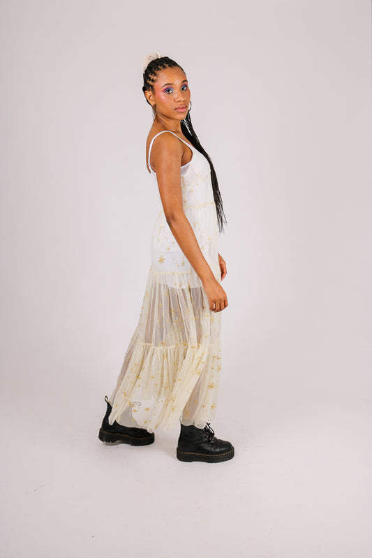 Sheer Maxi Moon & Star Print Dress