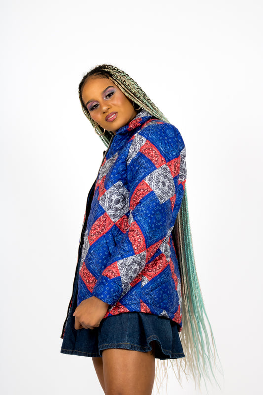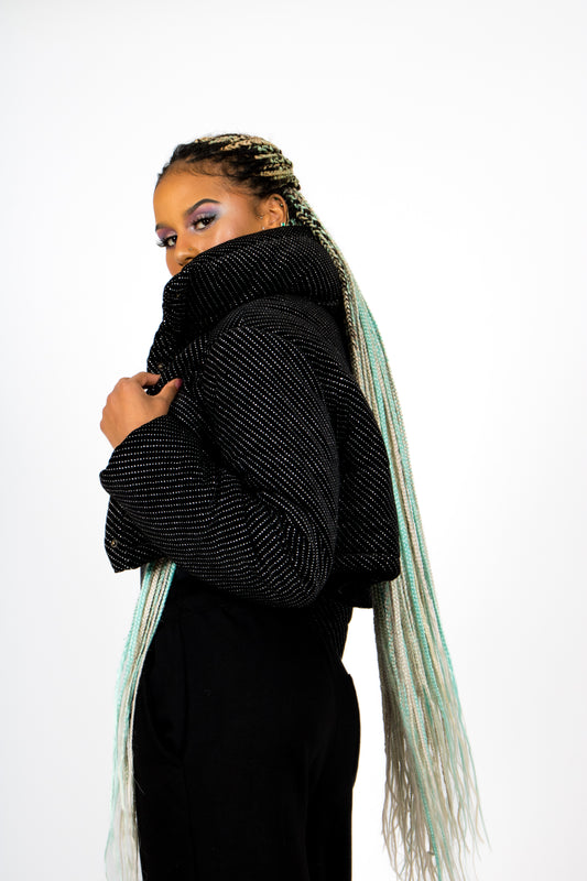 Cow Printed Trucker Borg Collar Cropped Jacket