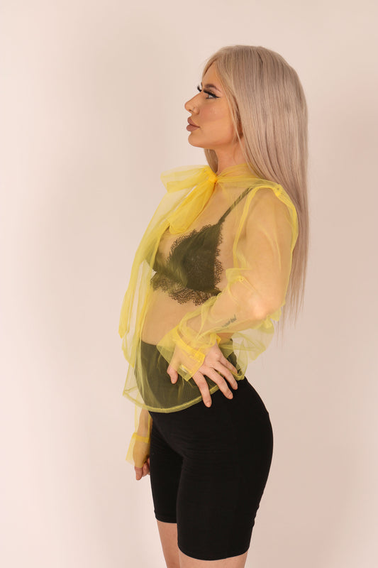 Yellow Sheer Organza Bow Blouse