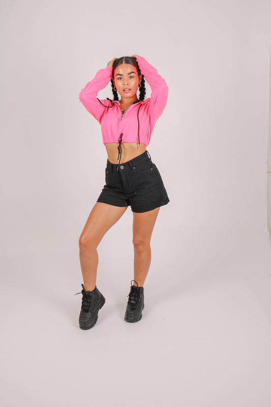 ONE ABOVE ANOTHER Neon Pink Cropped Hoodie