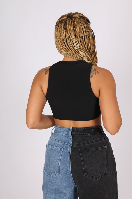ONE ABOVE ANOTHER Black Cut-Out Crop With Gold Links